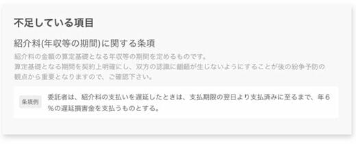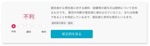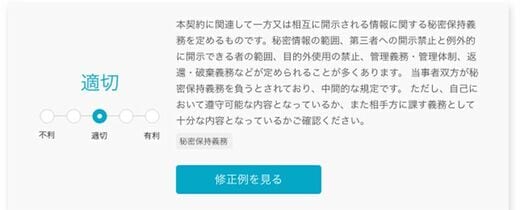 ファイルをアップするだけでここまでやってくれるとは……!不利な条項を一目で確認できる上に、修正案まで提案してくれます。