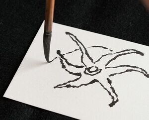 勢いよく描くためには、中心になるものを決めて、そこから描き始めます。筆を紙と直角になるように持ち、一気に描きます。実物より大きく描くのがコツです。絵手紙で使う画仙紙は墨を吸収してすぐに乾きます。