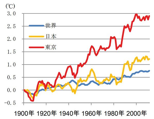 気温が上がっているのは地球温暖化の影響が考えられるが、この100年で世界の平均気温が約0.7℃の上昇、日本の平均気温が約1.2℃の上昇であることを考えると、東京の数字は際立っている。