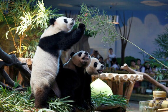 [29日 ロイター] - 中国広東省広州の動物園「長隆野生動物世界」で29日、三つ子のジャイアントパンダが、そろって4歳の誕生日を祝った。生存している三つ子のパンダは世界で唯一といわれる。