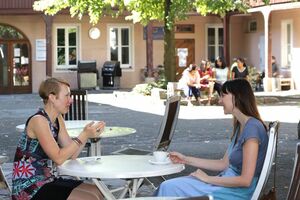 平日の午前中は言語関係の講座が多いが、カフェではお喋りに花を咲かせたり、自主的な勉強会をする人たちもいる。キャンパスそのものだ。ちなみにカプチーノが150円程度。経済基盤がまだしっかりしていない外国人にとっても手に届きやすい値段だ。