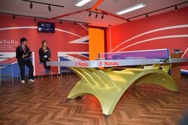 TaKuSuRuの印象について聞かれると、平野氏は「(施設までの)階段からおしゃれでびっくりしました」と卓球の発祥であるイングランドのユニオン・ジャックをモチーフとした内装に驚きの表情を見せると、「卓球ができる場所が増えていくことがトップ選手を育てる第一歩になると思うので、非常に嬉しい」と選手の育成強化に期待を寄せた。
