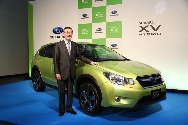 「XVハイブリッド車」と吉永社長(撮影:鈴木紳平)