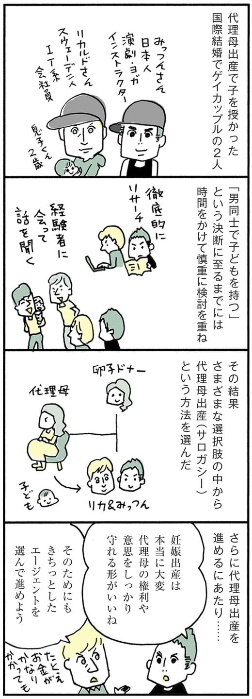 そんなふうに「つかれる家族」と「つかれない家族」を考察するこの連載。前々回から、スウェーデン人と日本人の国際結婚ゲイカップルであり、子育て中でもある「2人パパ」家族を紹介しています。前々回は子どもを持つまでのいきさつや家庭内の役割について(記事はこちら)、前回は具体的な家事育児分担について(記事はこちら)、今回はゲイカップルが子どもを持つにあたって考えたいろいろについて紹介します。