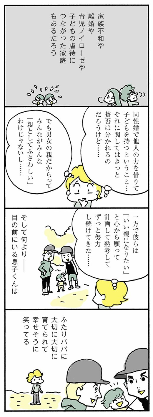 ライフ #ほしいのは「つかれない家族」 前の記事 次の記事 子どもを持つ前に「遺言書」が必要だったワケ 「親としてふさわしいか」を考えない恐ろしさ 3分で読める 公開日時:2018/08/24 06:00 ハラユキ イラストレーター、コミックエッセイスト フォロー 1/8 PAGES 2/8 PAGES 3/8 PAGES 4/8 PAGES 5/8 PAGES 6/8 PAGES 7/8 PAGES 異性婚の親が皆「親としてふさわしい」わけではない 次ページが続きます:【育児を始める前に熟慮を重ねることの意味】 8/8 PAGES
