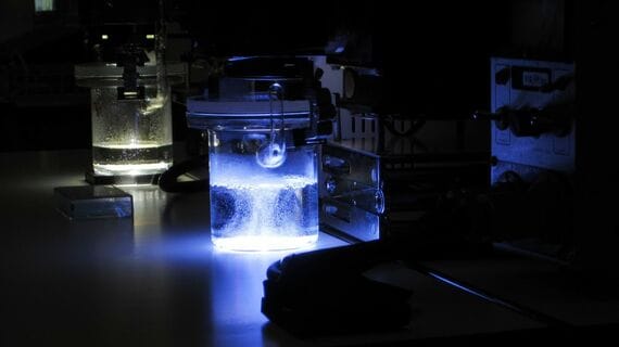 半世紀前、東京大学大学院生の藤嶋昭氏と指導教官の本多健一助教授(いずれも当時)が、水に浸けた酸化チタンの結晶に紫外光を照射すると、水が分解され水素と酸素が発生することを発見した。