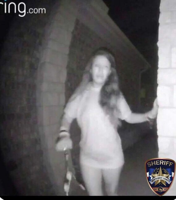女性の画像はネットで広く共有されている。白人で暗い髪の色で、上半身にTシャツのみを着て、民家の扉に近づいている様子が映っている。両手首に拘束紐と思われるものが巻かれていて、自身で切ったとみられている。