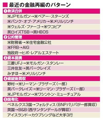 金融危機の最中、世界で金融大再編の嵐が吹き荒れている。