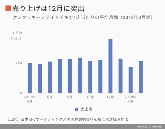 ケンタッキーといえば、収益の大部分をクリスマスで稼ぐことで知られる。店舗売り上げが通常時の6~7倍に拡大するクリスマスキャンペーンは最大の商戦期だ。昨年の12月23~25日の店頭売上高は過去最高の60億円を記録した。