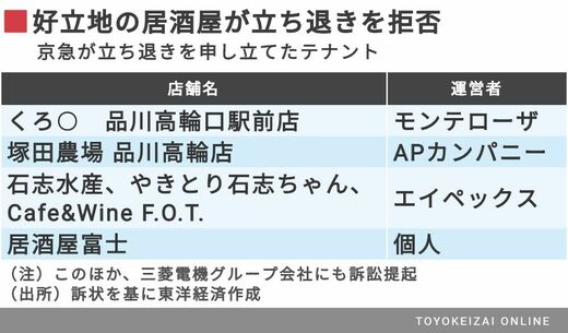 10年以上前から「くろ◯ 品川高輪口駅前店」を運営する居酒屋最大手モンテローザは、同店舗について「ターミナル駅の西口ロータリーに面する建物で、駅の乗降客や勤め帰りのサラリーマンが多数集まってくるという、居酒屋店舗には極めて適した客の流れが出来上がっている特別な場所。多大な売上や利益を獲得できる優良店舗」(裁判資料)とし、立ち退きに応じる気配はない。