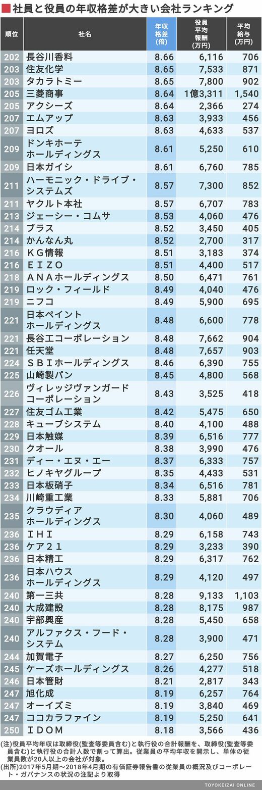 政治・経済・投資 #賃金・生涯給料ランキング 前の記事 次の記事 社員と役員の年収格差が大きいトップ500社 1位の格差は60倍、PCゲームで有名なあの会社 3分で読める 公開日時:2018/09/17 06:00 田中 久貴 東洋経済データ事業局 フォロー 1/11 PAGES 2/11 PAGES 3/11 PAGES 4/11 PAGES 5/11 PAGES 6/11 PAGES 次ページが続きます:【251~300位は?】 7/11 PAGES 8/11 PAGES 9/11 PAGES 10/11 PAGES 11/11 PAGES