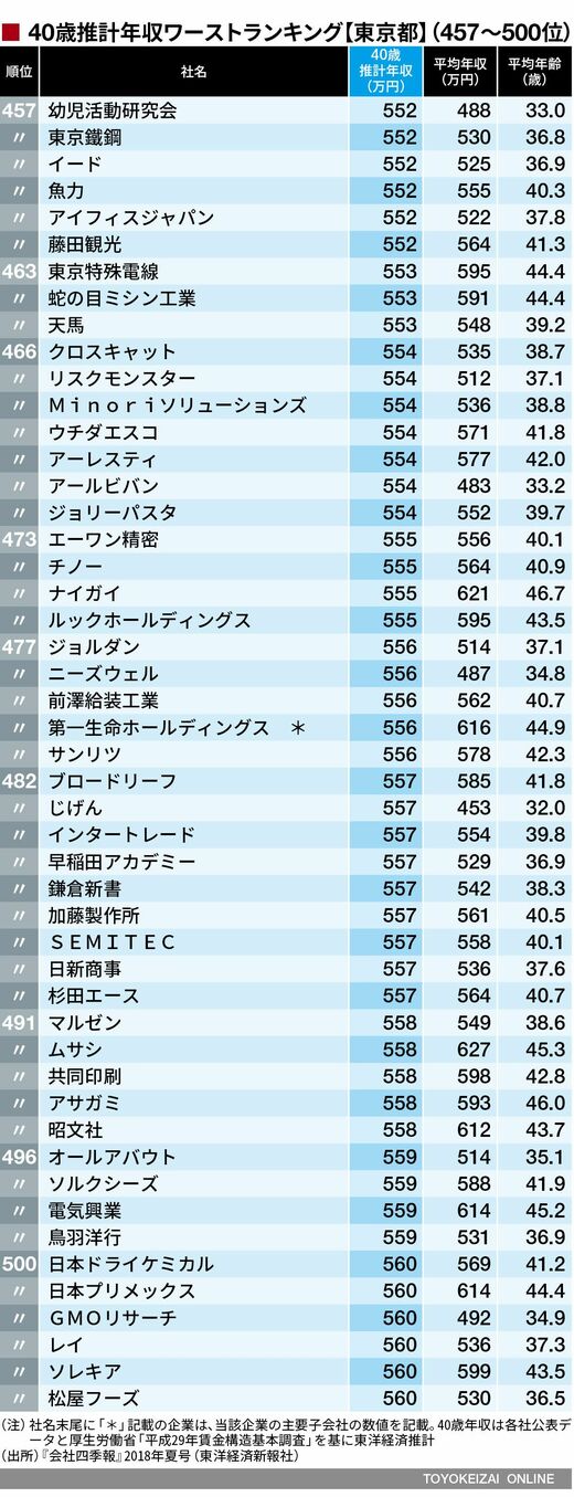 政治・経済・投資 #賃金・生涯給料ランキング 前の記事 次の記事 40歳年収「東京都ワースト500社」ランキング 首都の上場企業でも50社が「400万円」未満 2分で読める 公開日時:2018/09/19 06:00 東洋経済オンライン編集部 フォロー 1/11 PAGES 2/11 PAGES 3/11 PAGES 4/11 PAGES 5/11 PAGES 6/11 PAGES 7/11 PAGES 8/11 PAGES 9/11 PAGES 10/11 PAGES 11/11 PAGES