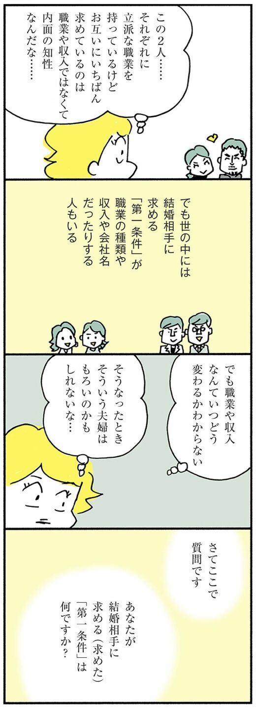 ライフ #ほしいのは「つかれない家族」 前の記事 次の記事 医者だった妻が専業主婦に!ある夫婦の試練 予想外の「結婚後ロールチェンジ」に夫婦は… 3分で読める 公開日時:2018/09/21 06:00 ハラユキ イラストレーター、コミックエッセイスト フォロー 1/10 PAGES 2/10 PAGES 3/10 PAGES 4/10 PAGES 5/10 PAGES 6/10 PAGES 7/10 PAGES 8/10 PAGES 9/10 PAGES 結婚相手に求める条件 次ページが続きます:【専業主婦の葛藤】 10/10 PAGES
