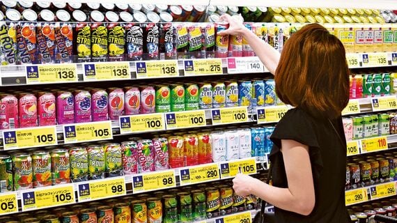9月上旬のある日の夕方。都内スーパーの酒売り場には、色とりどりの缶チューハイがぎっしりと並んでいた。1缶100円前後の商品が次々と買い物客のかごに入っていく。