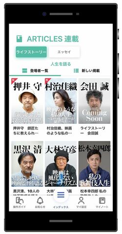 毎日更新される「エッセイ」&「ライフストーリー」をのぞいてみると、エッセイでは、「池上彰の映画で世界がわかる!」「ピーター・バラカンが語る、新たな音楽との出会い」「山本益博のずばり、落語!」など興味深いタイトルがずらりと並ぶ。