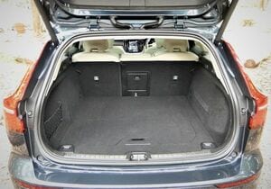 新型V60は後者の選択だ。写真で見てもわかる端正なボディスタイルからはラゲッジルーム優先のボディスタイルは想像しづらいかもしれないが、兄貴分にあたる「V90」と比較すると、テールゲートの角度は15度も立てられている。事実、積載量にしてもV90に迫っているし、旧型のV60 と比較すると99Lも大きい。もっともこの数値はVDA方式という容積で比較したもので、実際の積載にはたとえばリアサスペンションのラゲッジルームへのはり出しが少ないほうが使いやすい。
