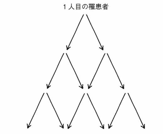 疫学において、「バイラル(ウイルス性)」という言葉の意味はもっと明確である。それは、病原菌が、菌自体が死ぬ、あるいは感染している人間が死ぬ前に、少なくとも2人以上に感染することである。ウイルス性の病気は、指数関数的に広がる可能性がある。1人から2人、その2人が4人、4人が8人──。あっという間に大流行に発展する。