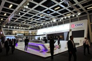中国企業の中でも、やはり圧倒的に目立つ存在は鉄道メーカーとして世界一の規模を誇る中国中車で、ボンバルディアやシュタドラーなどと同じ建物の中に大きなブースを構えていた。屋内展示は、時速350km運転を実現した同社自慢のCR400AF型の模型が、ブース正面の一番目立つ場所に展示された。