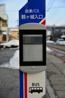 会津若松市の鶴ヶ城入口バス停と神明通りバス停。どちらもみちのりHD傘下の会津バスのバス停だ。観光地の「鶴ヶ城入口」では1日約40本のバスが、中心市街地にある「神明通り」バス停は1日約280本が通過する。