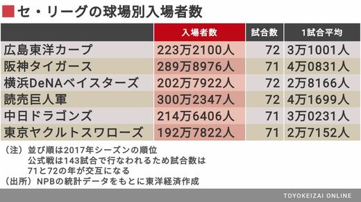 リーグ別に見れば、セ・リーグの入場者数が昨年比で1.5%増の1423万5573人で1試合平均3万3183人。パ・リーグが同1.8%増の1131万5146人で1試合あたり2万6376人となった。