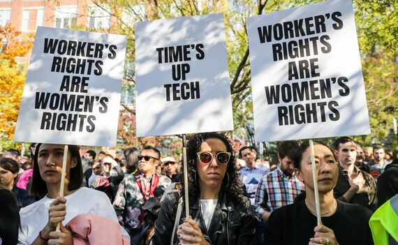 ニューヨークのグーグルのオフィスビル周辺では、男女が周辺ブロックをおよそ10分間にわたって静かに歩き回った。そのうち何人かは「女性に敬意を」といった内容のサインを掲げていた。