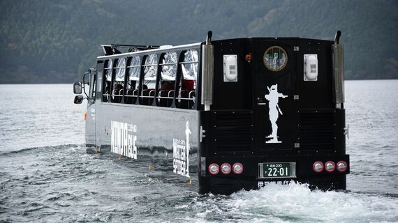 箱根芦ノ湖の遊覧船事業を手がける伊豆箱根鉄道と伊豆箱根バスが運航する水陸両用バス「NINJABUS WATER SPIDER」(以下、忍者バス)が今年4月のデビュー後、初の紅葉シーズンを迎える。バスとして芦ノ湖畔を周遊した後、水しぶきを上げながら勢いよく飛び込み、遊覧船になって湖上からの景色を楽しめる忍者バスは、箱根の新アトラクションとして期待が大きい。
