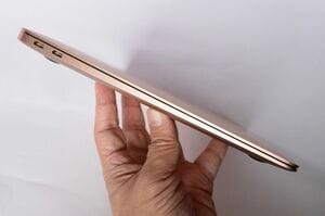 初代MacBook Airから続くくさび形のフォルムはそのままだが、今回は外層部のどこにも吸排気のスリットが見えない。