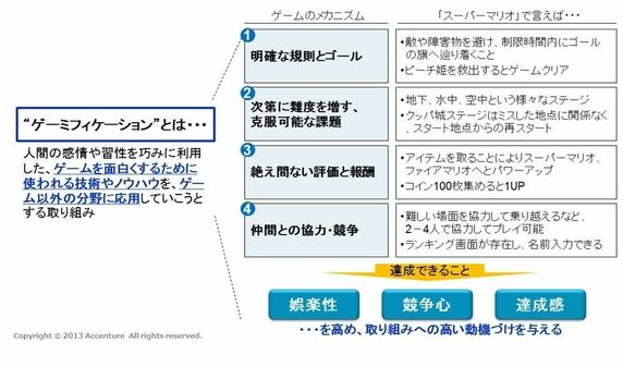 このような、ゲームを面白くするために使われる技術やノウハウを、企業のサービス・事業開発やマーケティング、教育など、ゲーム以外のさまざまな場面で活用する動きが活発化している。こういった取り組みは「ゲーミフィケーション」と呼ばれ、人材育成の領域でも近年、活用され始めている。