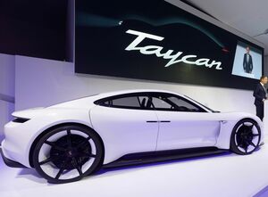 タイカンは、「パナメーラ」より一回り小さいCセグメントのサルーンで、ドライビングポジションはフラッグシップセダンの「911」に近い。600馬力の4輪駆動で0-100km/hは3.5秒。1充電あたりの航続距離は500kmと市販のEVを上回る。800Vのバッテリーを搭載し、15分で80%の急速充電が可能だ。350kWの超急速充電システムを使えば、9分での充電が可能だという。