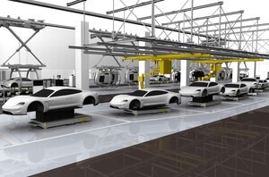 このほどポルシェは、タイカンが製造されるシュツットガルト市内のツッフェンハウゼン工場の新ラインを公開した。この工場では、911など2ドアの車種を中心に、年間約5万2000台を製造する。その狭い敷地に横たわるような形で、タイカンのラインを建設中だ。