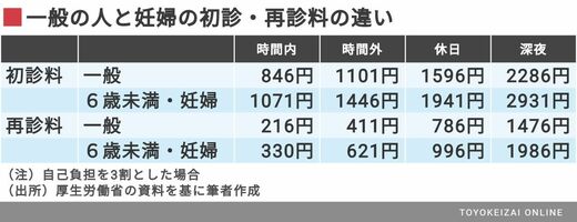 この妊婦加算、どういった背景で導入されたのでしょうか。特別な加算があるのは妊婦だけなのでしょうか。医療機関に行ったときにかかる初診料、再診料、外来診療料には、時間外、休日、深夜における加算があり、これらは、どの患者にも一律にかかります。