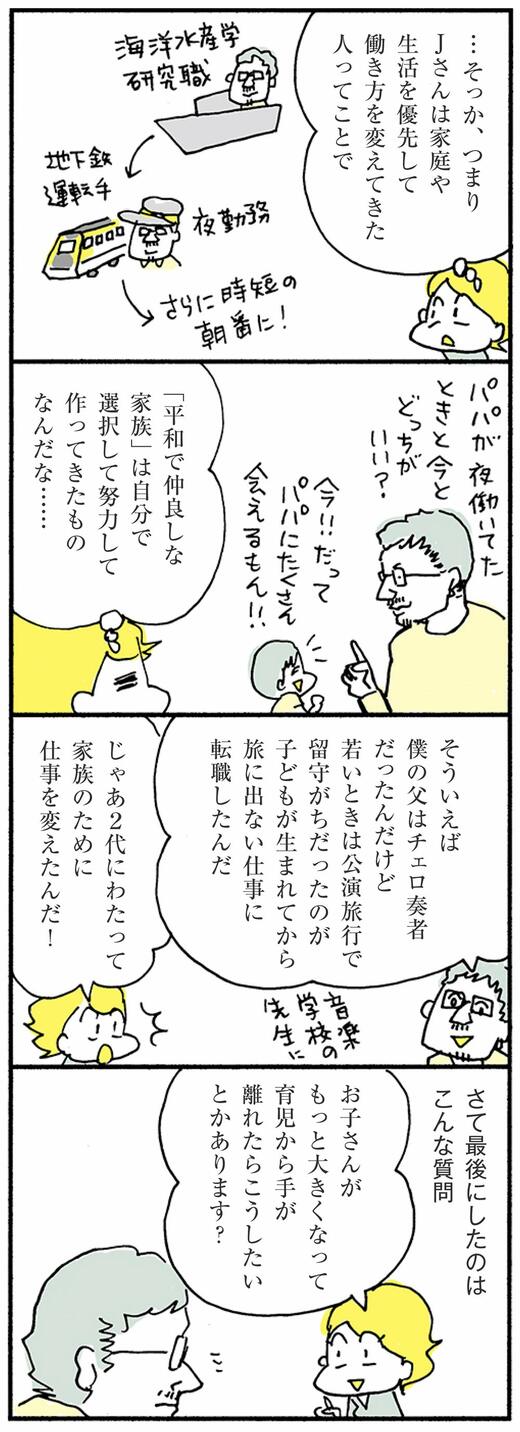 ライフ #ほしいのは「つかれない家族」 前の記事 次の記事 「生活のための仕事」に転職した男性のホンネ 海洋水産学の研究者から地下鉄の運転手に… 3分で読める 公開日時:2018/11/30 05:00 ハラユキ イラストレーター、コミックエッセイスト フォロー 1/8 PAGES 2/8 PAGES 3/8 PAGES 4/8 PAGES Jさんの父も家族優先で仕事を変えていた 次ページが続きます:【妻に希望の仕事に就いてほしいワケ】 5/8 PAGES 6/8 PAGES 7/8 PAGES 8/8 PAGES
