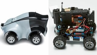 秘伝技術を明かしたかと思えば、今度は“AIラジコンカー”なるものもお披露目された。AWSが開発した「ディープレーサー」は、一般的なレーシングカーの18分の1サイズで、CPUやカメラ、加速度センサー、ロボット用のOSや画像認識ソフトウエアを搭載する。価格は399ドル。「強化学習」と呼ばれるAIの学習方法を用いれば、人間が操作しなくても模擬的なコースの上を走れるようになる。