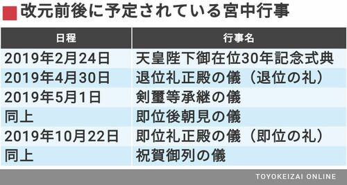 そこで今回は改元前後に予定されている儀式や行事のスケジュールや、その内容、意味について解説したい。