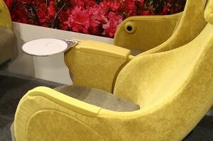 その座面よりも5センチほど下となるとひざよりも下に窓の下辺が来る計算になる。不安感を与えないよう、シートは体を包み込むようなデザインにし、窓全体にドットプリントも施しているが、車窓の風景が一変することは間違いない。