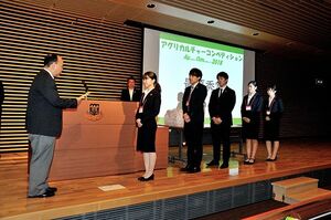 最後は、表彰式。最優秀賞に選ばれたのは、日本大学商学部秋川卓也ゼミTeam Sath-tena。ゼミ代表の田中秀幸さん(3年生)とチーム代表の山下莉奈さん(3年生)は次のように喜びを語った。