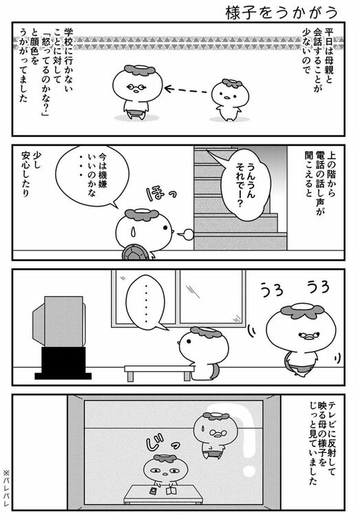 ライフ 不登校の子どもは「家の中」でもラクじゃない 母親やクラスメイトへの複雑な思い 2分で読める 公開日時:2018/12/30 15:00 不登校新聞 1/2 PAGES INDEX 母の顔色をうかがっていました 母やクラスメイトに対して申し訳ない気持ちに 学校へ行かない日でも気が休まる日はありませんでした(画像:不登校新聞) 作者・りゃこさんの不登校をコミックエッセイにした「私の不登校ものがたり」です。 母の顔色をうかがっていました (画像:不登校新聞) 次ページが続きます:【クラスからの手紙】 2/2 PAGES