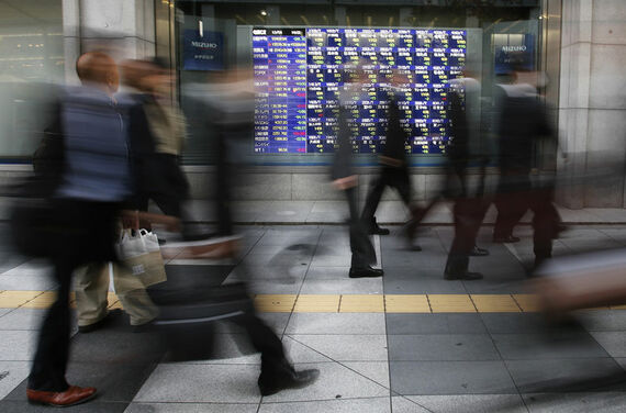 12月27日、寄り付きの東京株式市場で日経平均は前営業日比379円13銭高の1万9706円19銭となり、大幅続伸した。写真は都にの株価ボード前で2013年12月撮影(2018年 ロイター/Toru Hanai)