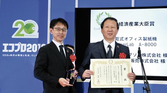 優れたエコ製品やサービスを表彰する「第1回エコプロアワード」で、エプソンの乾式オフィス製紙機『PaperLab(ペーパーラボ)A-8000』が経済産業大臣賞を受賞した。