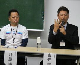 会場には、吉井氏、阿井氏、大島氏のほか、立花龍司氏の姿もあった。またNPB各球団の関係者や、現役のプロ野球選手も顔を出した。元プロ野球人たちは、筑波大学で何を学んだのだろうか?