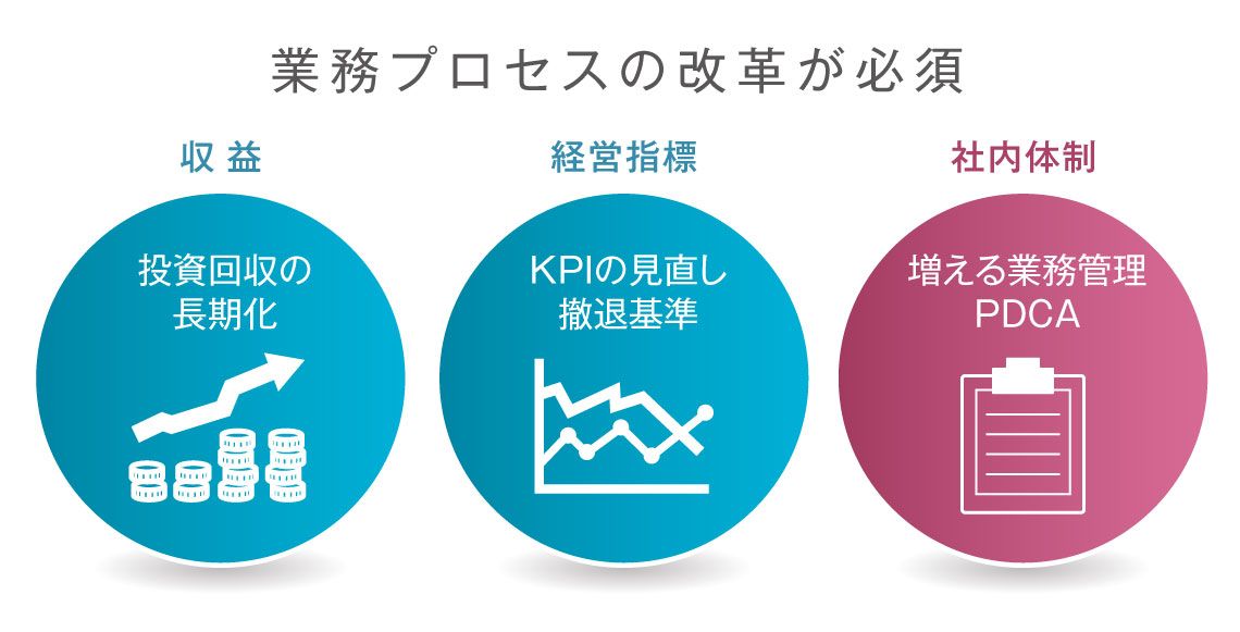 業務プロセスをきちんと設計していないと、結局のところユーザーの満足を得られずに、解約されてしまう状況になってしまうのです。マネジメントを含めた業務プロセスをどう変革していくのかが、課題です。