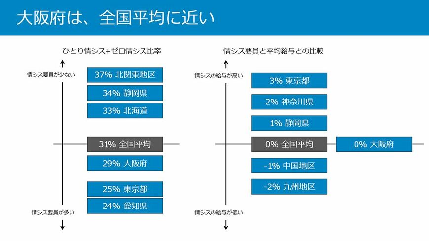 同社が実施した「中堅企業IT投資動向調査」の結果によると、人員数や給与水準、経営者の年齢、意思決定プロセスなど、多くの項目で大阪は全国の平均値に近く、国内のマーケット全体を象徴するエリアだ。