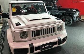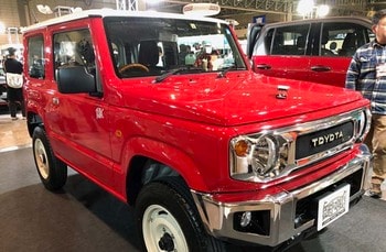 ――東京オートサロンではスズキブース以外にも多数の新型ジムニーカスタマイズカーが登場しました。メルセデスGクラスっぽいボディパーツは出てきて当然、というイメージですし、トヨタのランクルっぽくするクルマなどいろいろです(なお、カスタマイズされたジムニーはスズキとは直接関係のない社外品である)。
