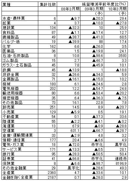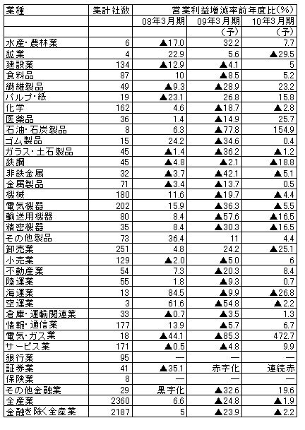 足元の景気は悪化する一方で、円高など不透明な要素が大きいことも確かだが、今後は来10年3月期に反転できる業界がどれだけ出てくるかが注目点となる。