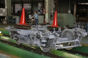 振子はりをスムーズに動かすため、台車枠と振子はりの間には円筒形の振子コロ、もしくはベアリングガイドレールを設けている。