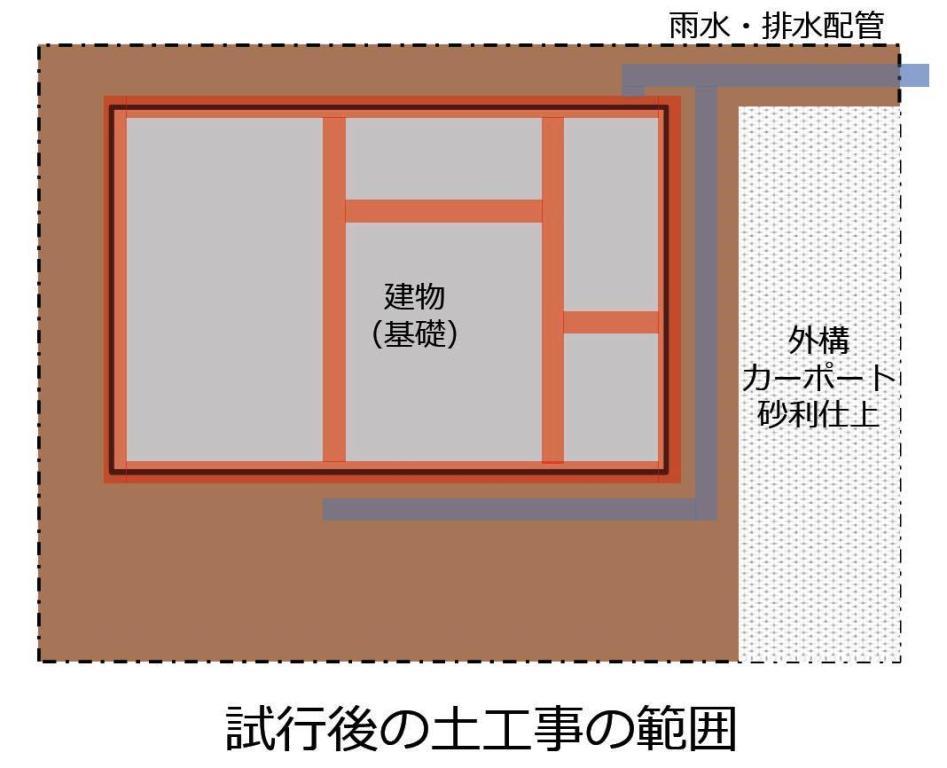 その一例が、土のムダをなくすこと。これまでであれば、建物の基礎を作るために、土の掘削や埋め戻し、残土の処理などに20万円近くを費やしていた。ところが今回、いくつかの見直しを実施することで、土にかかわる費用を7万円に抑えることが可能になった。