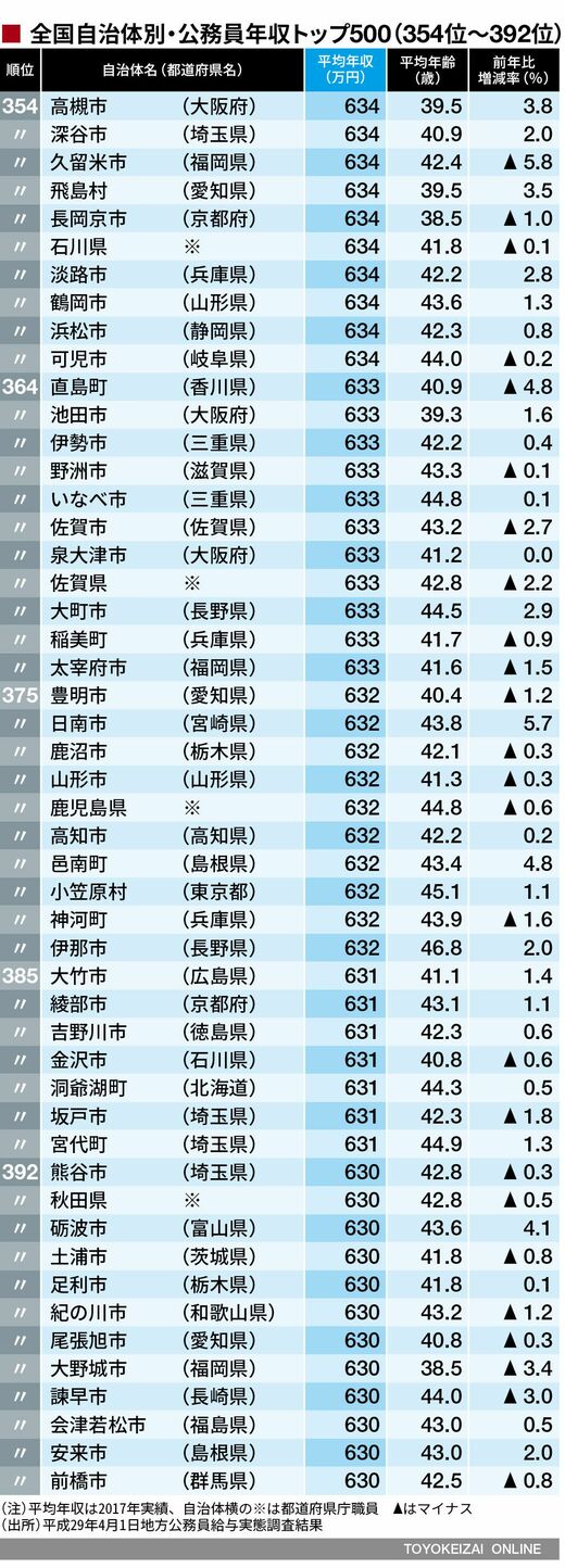 政治・経済・投資 #賃金・生涯給料ランキング 前の記事 次の記事 これが「公務員年収が高い自治体」トップ500だ 1位は神奈川県厚木市751万円、大都市が高い 3分で読める 公開日時:2019/03/26 04:40 東洋経済オンライン編集部 フォロー 1/11 PAGES 2/11 PAGES 3/11 PAGES 4/11 PAGES 5/11 PAGES 6/11 PAGES 7/11 PAGES 8/11 PAGES 9/11 PAGES 次ページが続きます:【401~450位は?】 10/11 PAGES 11/11 PAGES