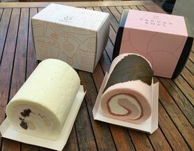 桜ロールのほうは、シーズンロールよりやや甘さが勝っている感じだ。生地に巻き込まれている桜色のあんこには、桜餅風にほんのり塩気があり、甘さを引き立てている。いずれもほうじ茶といっしょに食したいような、和風の香りがするロールケーキに仕上がっている。