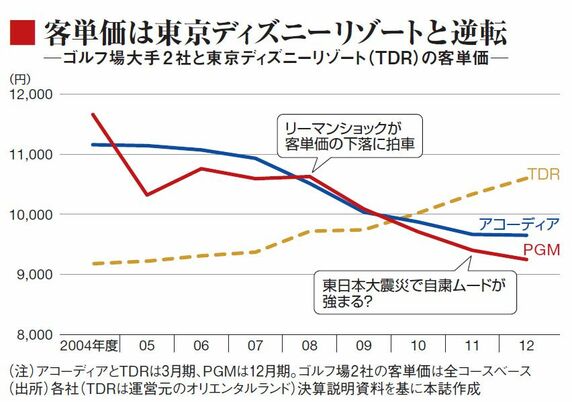 ゴルフとTDRの客単価逆転の理由はそのあたりにありそうだ。とはいえ、バブル期に3万円近かったゴルフ料金がなぜここまで下がったのか。