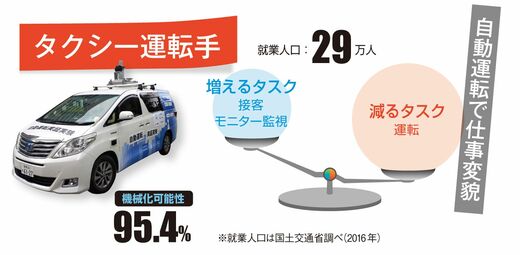 しかし、アーンツ氏らの研究結果にも加味されていない要素がある。その1つは「現実社会では新しい仕事が生まれる」ことである。前述のタクシー運転手の「カメラを通じて監視する仕事」がこれに当たる。